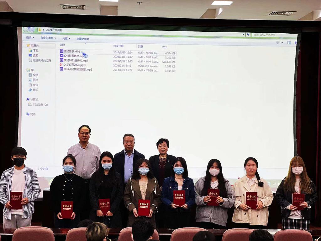 会上,胡永远书记宣读《关于表彰2020-2021学年自考助学“优秀大学生”、“优秀学生班干部”的决定》,授予严龙等21名同学为“优秀大学生”荣誉称号,授予皇甫文博等9名同学“优秀学生干部”的荣誉称号。
