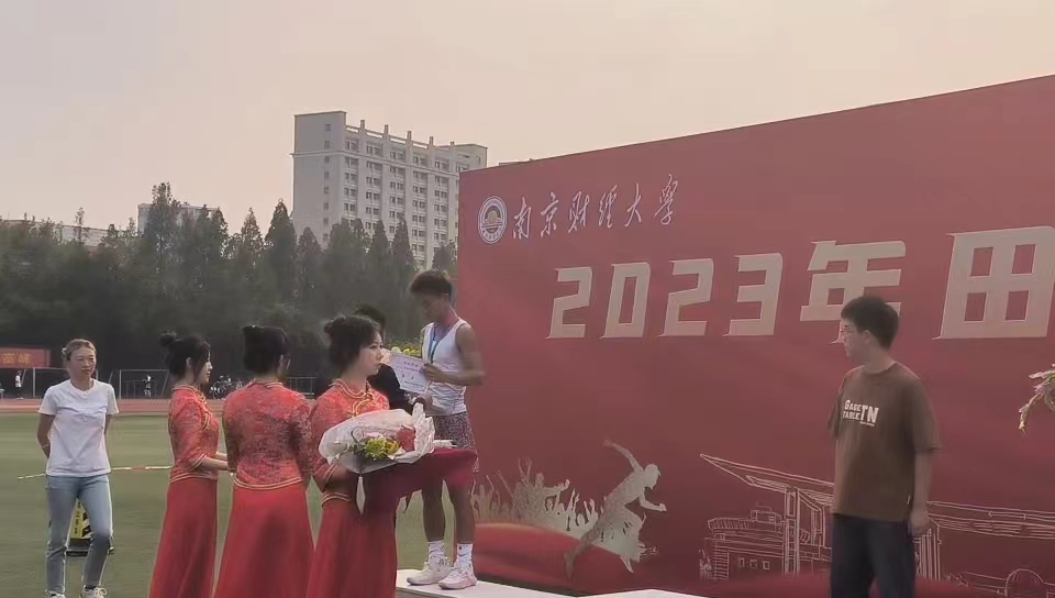 房地产2301班路治国和房地产230雷俊文分别斩获男子100米与第二名与第八名。裁判一声“预备”,选手们弯曲的手臂猛地绷直,左膝蹬直,目视前方,全场都一起摒住了呼吸。“砰!”路治国逆着大气,猛地冲了出去,双臂加速摆动,大腿的肌肉紧绷,11.19秒,路治国冲过了终点线,全场都在为他们欢呼!