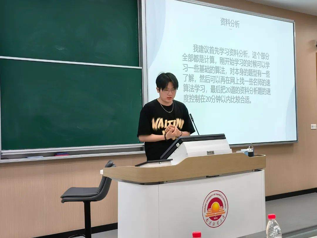 最后,学院邀请了公事管2001林昕、劳社保2001甘也竣枫、房地产2001程习涵三位优秀的同学进行经验分享。他们根据自身实际情况,为同学们分享了自己的“独家秘笈”,同学们听完后受益匪浅。