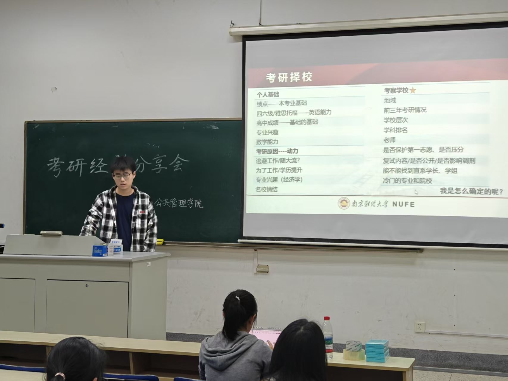学生会在德济楼102教室举办了“筑梦沿途,经验领航”考研经验分享会。本次邀请到4位分别上岸中国人民大学、中国科学院大学、华中农业大学、厦门大学的优秀学长学姐,为同学们带来实用备考经验与暖心建议。