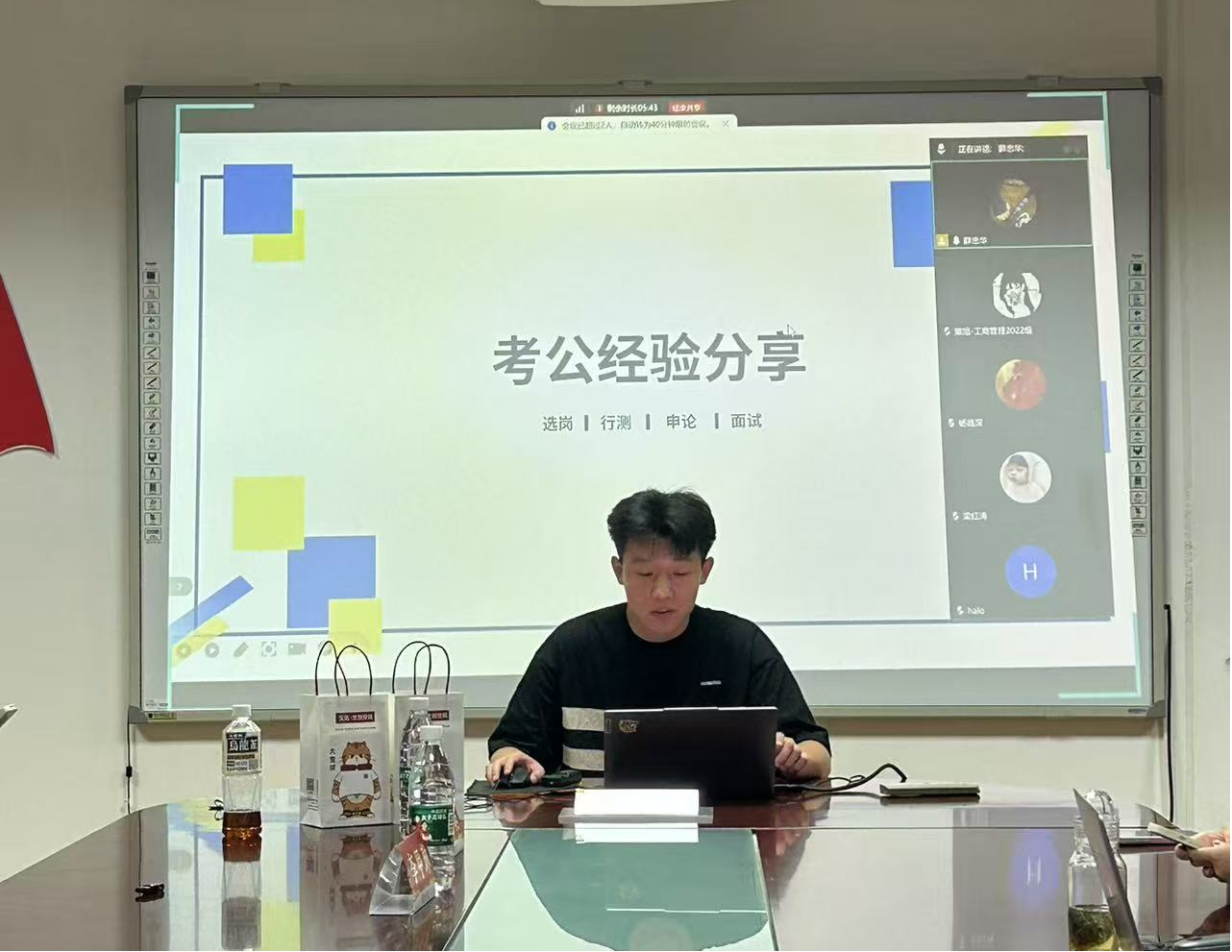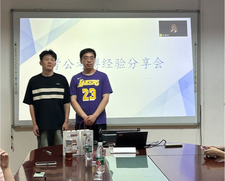 研究生党支部和研究生会举办 "考公考博经验分享会"。本次活动通过线上线下联动形式开展,邀请了3 位成功上岸的学长学姐分享实战经验,学院数名研究生参与交流。研会组织部任晓晓担任主持人,现场氛围热烈。