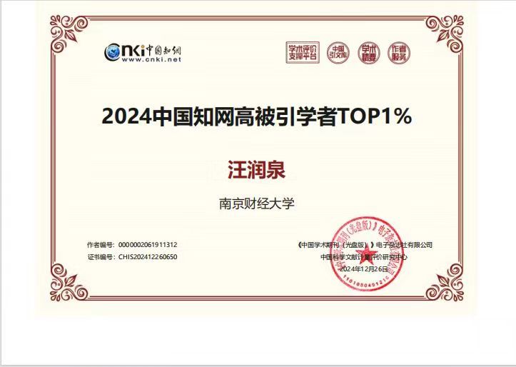 入选“2024中国知网高被引学者”名单是对学者个人学术成就和学术影响力的肯定。在本次发布的TOP 1%名单中,公共管理学科共有864位学者入选,政治学学科共有663位学者入选,农林经济与管理学科共有670位学者入选,环境科学与工程学科共有418位学者入选,应用经济学学科共有3382位学者入选。