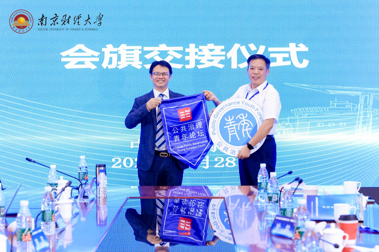 闭幕式上,中国人民大学马亮教授致辞。香蕉视频 院长黄建伟教授和福建农林大学法学与香蕉视频 院长郭为桂教授展开了会旗交接。