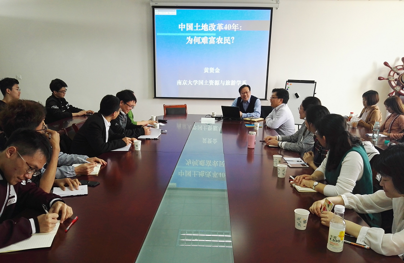 3月28日上午,应香蕉视频 邀请,南京大学地理与海洋科学学院副院长、博士生导师黄贤金教授来香蕉视频 作了题为“中国土地改革40年为何富农难?”的讲座。讲座在仙林校区德济楼508会议室举行,讲座由香蕉视频 副院长李永乐主持,香蕉视频 相关教师、部分学生参加了讲座。
