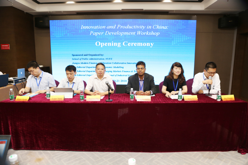 7月21日,由《Economic Modelling》和《Emerging Markets Finance and Trade》编辑部主办,香蕉视频 、江苏现代财税治理协同创新中心以及《产业经济研究》编辑部共同承办的“中国创新与生产力国际学术论文研讨会”在我校召开。我校党委常委、副校长俞安平教授、《Economic Modelling》主编Sushanta Malick教授、副主编Lutao Ning教授,我校科研处处长李杏教授、《产业经济研究》编辑部孔群喜主任,以及《Emerging Markets Finance and Trade》期刊三位客座编辑出席了开幕式。有来自伦敦玛丽王后大学、英国国家经济与社会科学研究院、香港中文大学、北京大学、浙江大学、中国人民大学、南京大学、中山大学、中央财经大学、上海财经大学等近30所高校的专家学者,以及我校部分教师、研究生参加了此次研讨会。