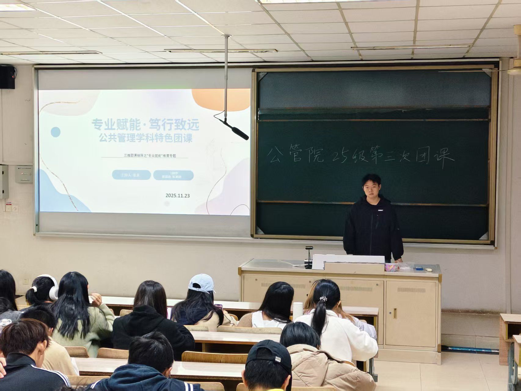 本次主题团课内容充实、形式新颖,成功地将“专业赋能”的内涵具象化,极大地激发了同学们的专业热情与社会责任感。大家纷纷表示,将以此次团课为起点,努力打磨专业“武器”,在“笃行致远”的道路上展现公管学子的青春担当。