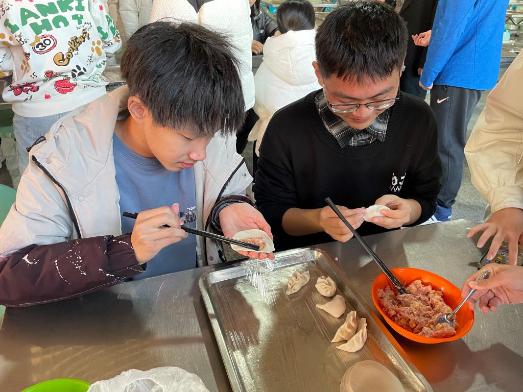活动期间,同学们的热情高涨,分面皮、分饺子馅、包饺子,随着同学们的努力,一个个外形特别的饺子出现了,小巧玲珑,各具特色。大家认真看着餐厅阿姨的示范,纷纷尝试着包出了漂亮的饺子。大家有说有笑,分享包饺子的经验,交流学习经验,场面十分热闹。张荣霞副书记也参与进同学之中,和同学们一块包起了饺子。经过大家的不懈努力,一盘盘热气腾腾的饺子端上了餐桌。尽管饺子的形状千奇百怪,但味道十分美味。饺子的热气在空气中蔓延,洋溢在每一位同学的心里,是深冬时刻的温暖与浓情。大家边吃边谈,气氛非常活跃,感受着劳动带给大家的快乐。