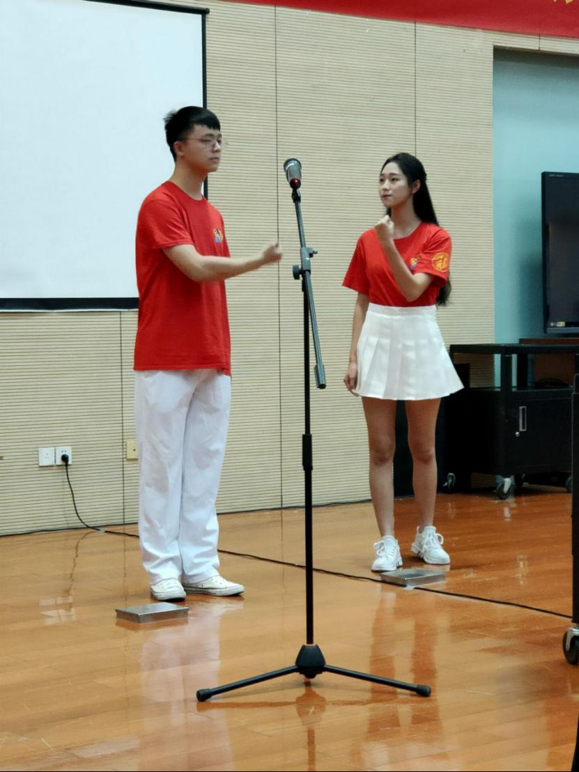 香蕉视频 参赛作品——《党旗颂》由十位同学演绎。参与同学身着红色院服,既表现了“大爱公管”的精神,更体现了公管学子对祖国、对党的满腔热忱!