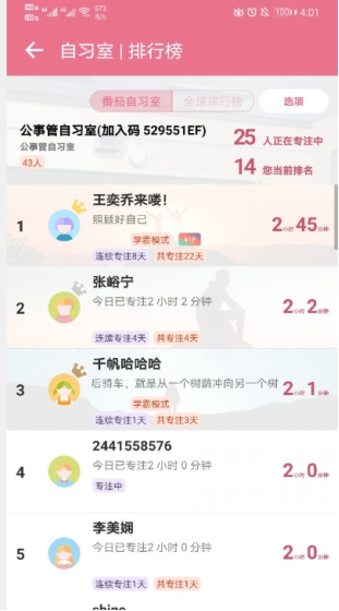 本着严于律己的目标,19级学生借助番茄To Do app 建立各个班级独属的自习室,让同学们互相监督激励建立了良好的学习氛围。组织本次活动的李晓燕老师表示,把竞技风格引入学习,借助互联网信息化平台,用线上学习竞赛的方式让学生具有更强的学习竞争意识,人人都争当全场最佳的MVP,让学习更具激励性和竞争性。同时充分利用课余时间来巩固课上已学知识点,静下心来去思考,找出自己的困惑之处及时反馈